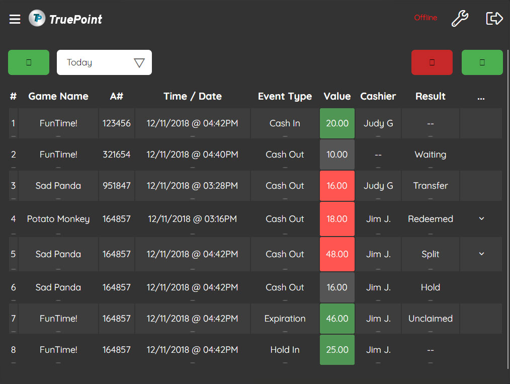 With the TruePoint POS you can assign your customers their own Player Cards, allowing an individual to redeem their play session to the card, and use in the future, without a cashier being involved. A machine can be outfitted with it’s own card reader and touchscreen, allowing the customer to transfer credits (and HandCount!) to a machine as desired.